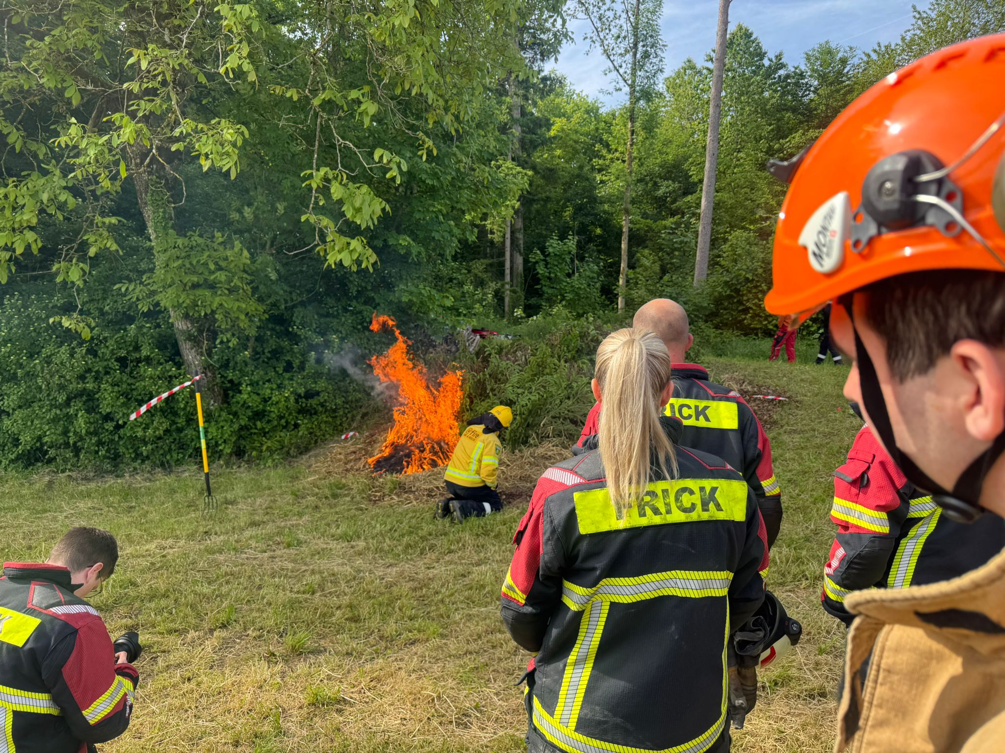 Eine spezielle Übung durften unsere Zivilschutzangehörigen aus dem sogenannten Schnelleinsatzzug erleben. Im Rahmen unserer Zusammenarbeit mit den Feuerwehren wurden wir dieses Jahr durch die Stützpunktfeuerwehr Frick eingeladen, an einer Übung zum Thema Vegetationsbrände teilzunehmen. Eine spezialisierte Firma hat dafür eigens ein paar Posten vorbereitet. Und es wurde sogar (kontrolliert) richtig Feuer gelegt, damit die Auswirkungen auch realitätsnah miterlebt werden konnten. Natürlich wurden unsere Zivilschützer auch, wo nötig, mit Brandschutzkleidern ausgerüstet, damit die Sicherheitsvorschriften eingehalten wurden. Nachfolgend einige Impressionen, weitere finden Sie unter 2025