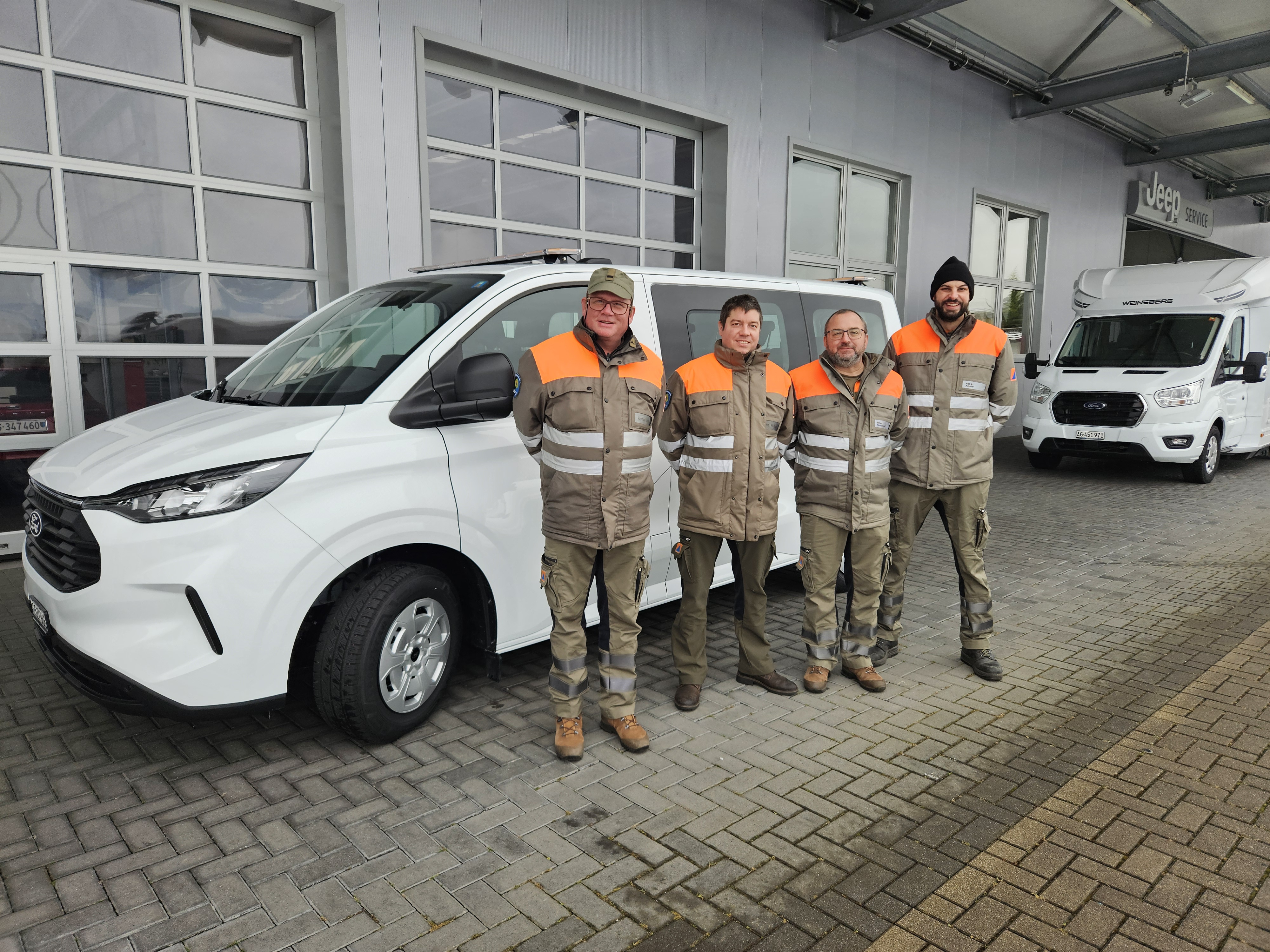 Am 13. Januar 2026 konnten wir den neu bestellten Ford Transit Custom bei der Garage Winter in Kaisten entgegennehmen. Er ersetzt den älteren PUCH aus dem Jahr 1991. Mit seinen 9 Sitzplätzen und der höheren Anhängelast als beim Puch ergänzt er die bestehende Flotte optimal und stellt unsere Personentransportkapazitäten sicher. Durch das Gelblicht auf dem Dach steht er auch universell für alle Einsatzbereiche, unter anderem auch für Arbeiten an der Strasse, zur Verfügung.