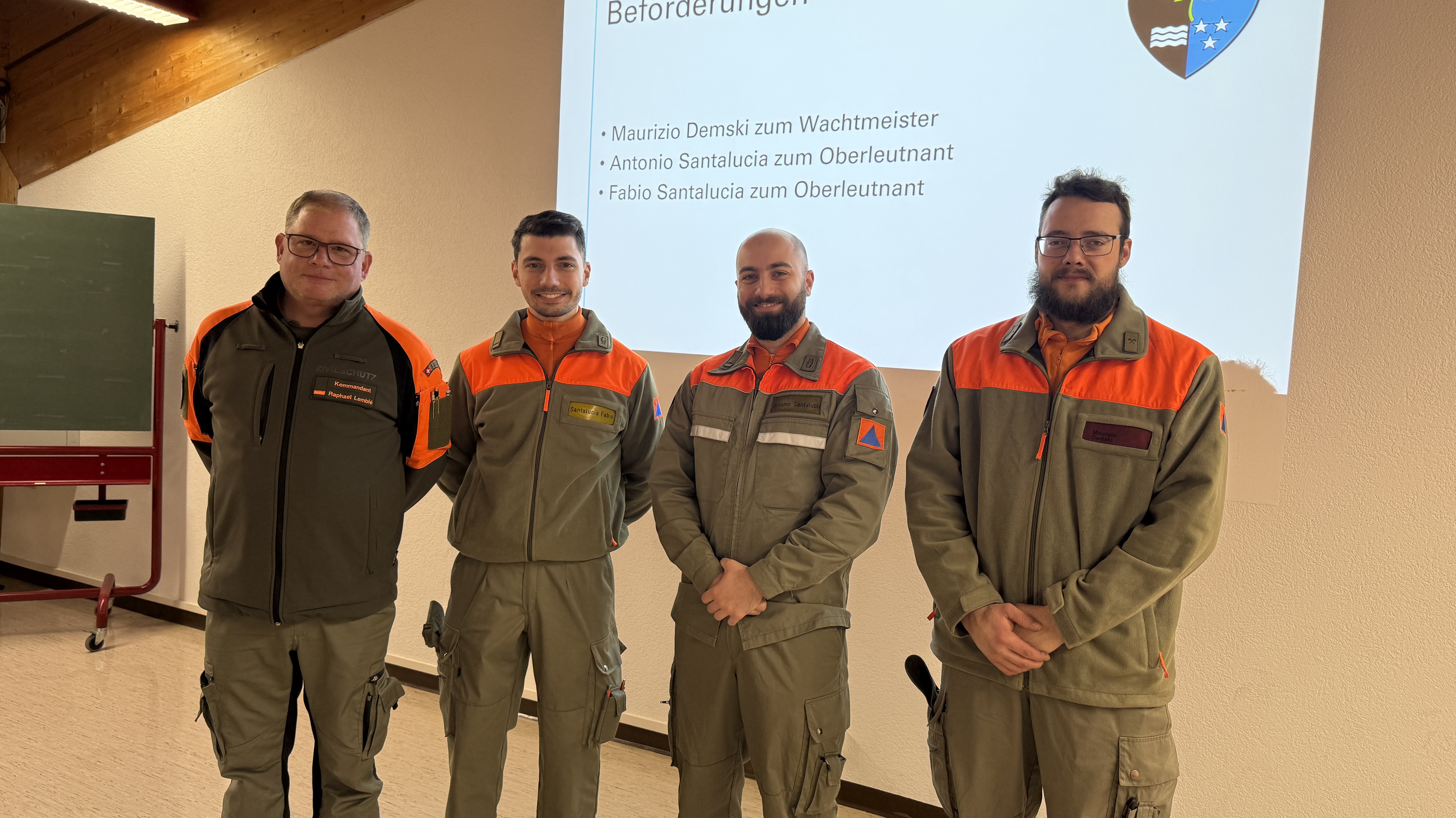 Am Ende der Kadertage wurden zudem Beförderungen von Kadermitgliedern vorgenommen. Fabio und Antonio Santalucia wurden für ihre mehrjährigen, zusätzlichen Leistungen vom Leutnant zum Oberleutnant und Maurizio Demski ebenfalls für seine sehr guten Leistungen vom Korporal zum Wachtmeister befördert. Herzliche Gratulation!